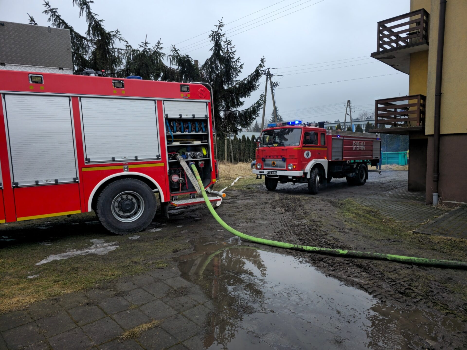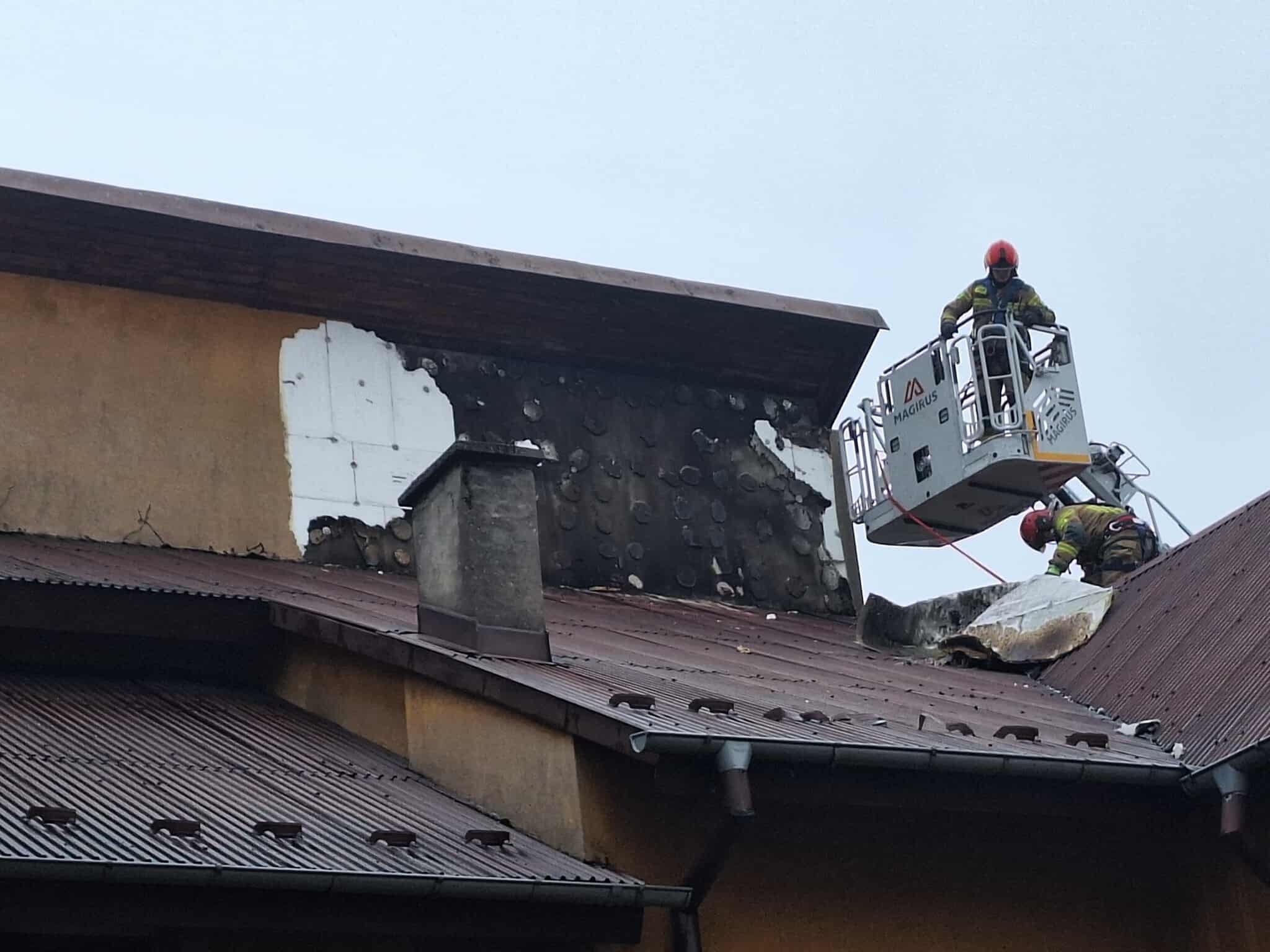 Jeszcze przed przybyciem służb trzy osoby samodzielnie opuściły budynek, a w chwili dojazdu pierwszych zastępów płonęła już część dachu.