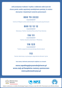To zdarzenie po raz kolejny pokazuje, jak ogromną rolę w policyjnej służbie odgrywa praca dyżurnego – często niewidoczna, prowadzona w ciszy policyjnej dyżurki, ale mająca bezpośredni wpływ na ludzkie życie. Opanowanie, doświadczenie i empatia funkcjonariusza po drugiej stronie słuchawki mogą mieć decydujące znaczenie. Policjanci przypominają, że w sytuacjach kryzysowych nigdy nie jesteśmy sami. Warto szukać wsparcia i nie bać się prosić o pomoc – zarówno bliskich, jak i odpowiednich służb. Jeśli zauważysz, że ktoś z twojego otoczenia potrzebuje pomocy, nie zwlekaj – szybka reakcja może uratować życie – mówi aspirant Dariusz Kaczmarek, oficer prasowy KPP w Radomsku.