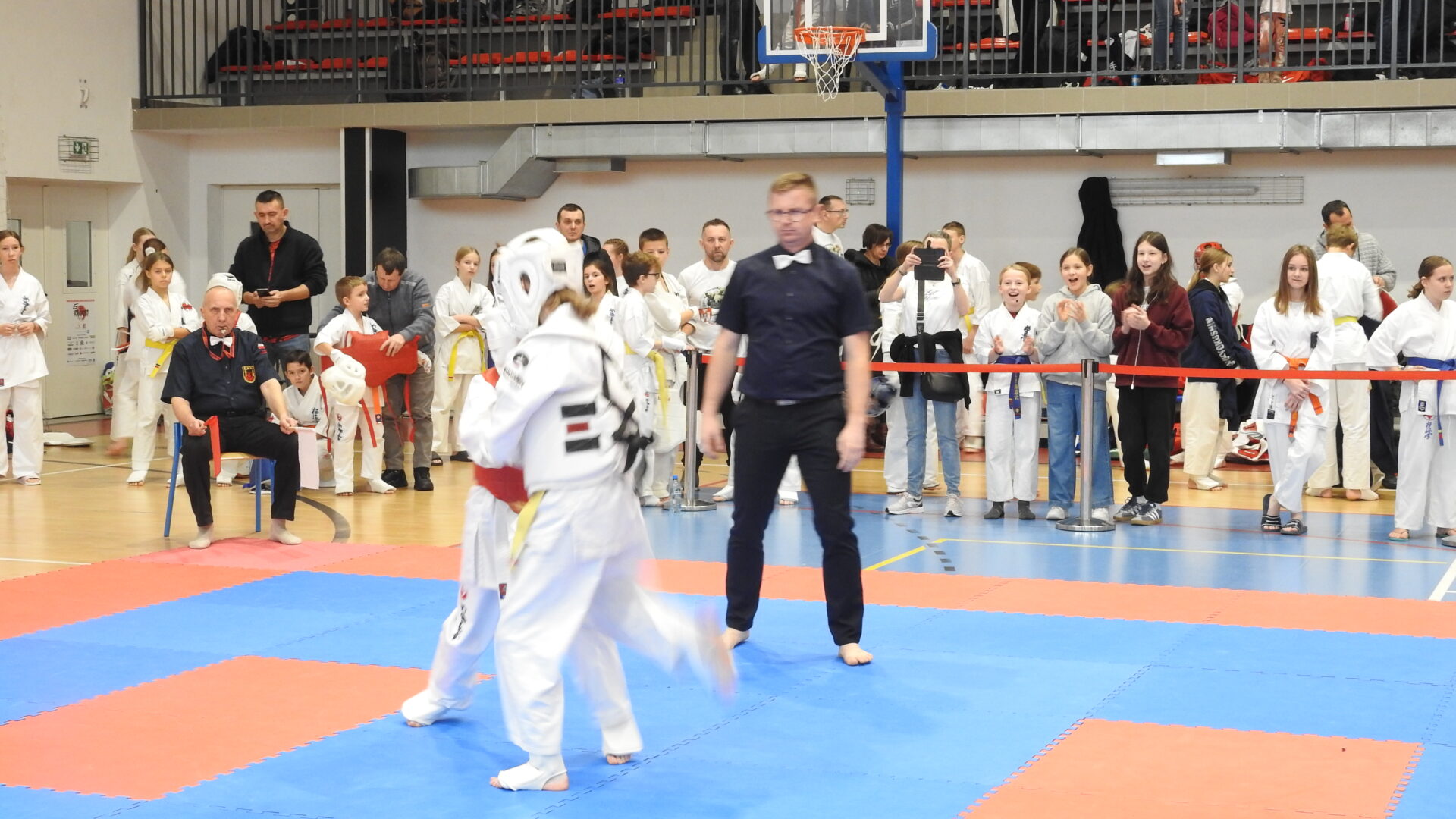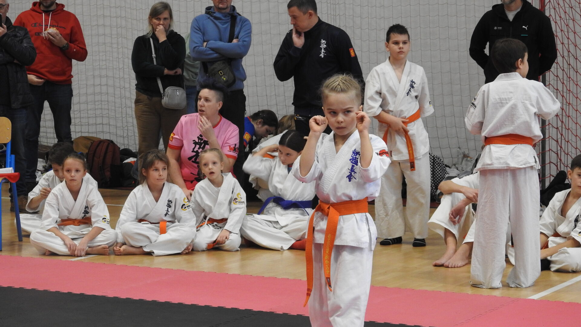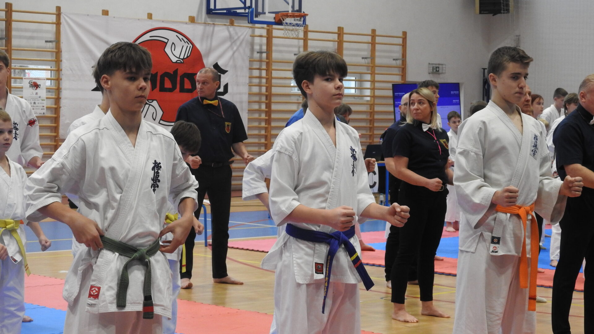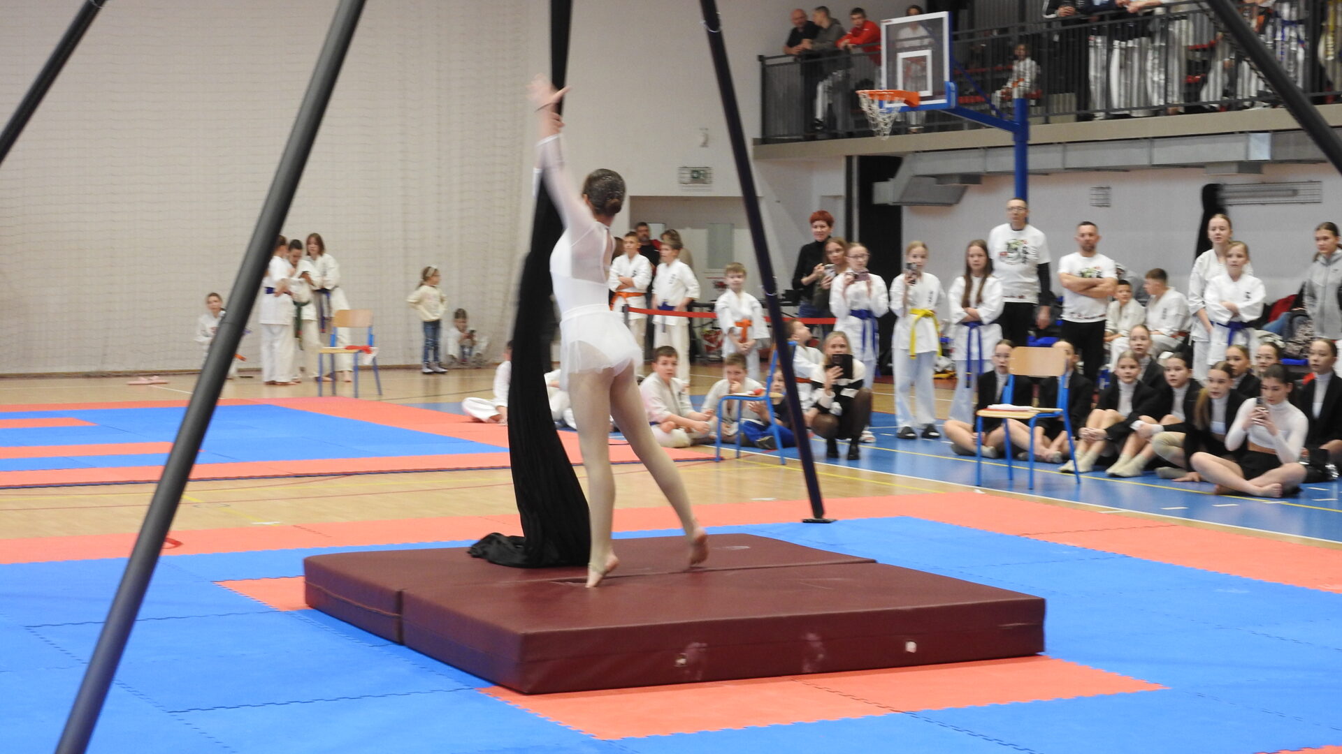 Uroczystej inauguracji towarzyszyły pokazy akrobatyczne, które wprowadziły widzów w sportowy klimat i dodały wydarzeniu energii. Po godzinie 11:00 zawodnicy wyszli na maty, rozpoczynając emocjonujące zmagania w swoich kategoriach wiekowych. Rywalizacja przebiega w duchu fair play, zgodnie z wartościami karate – dyscypliną, wytrwałością i wzajemnym szacunkiem.