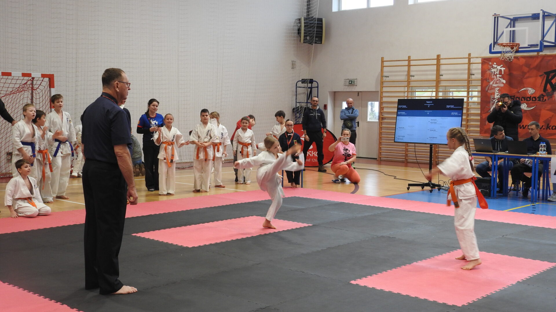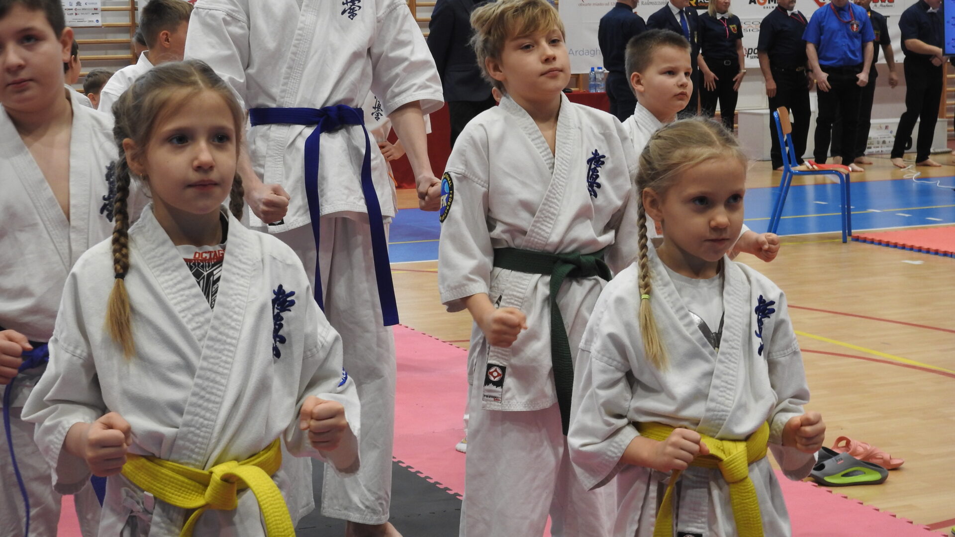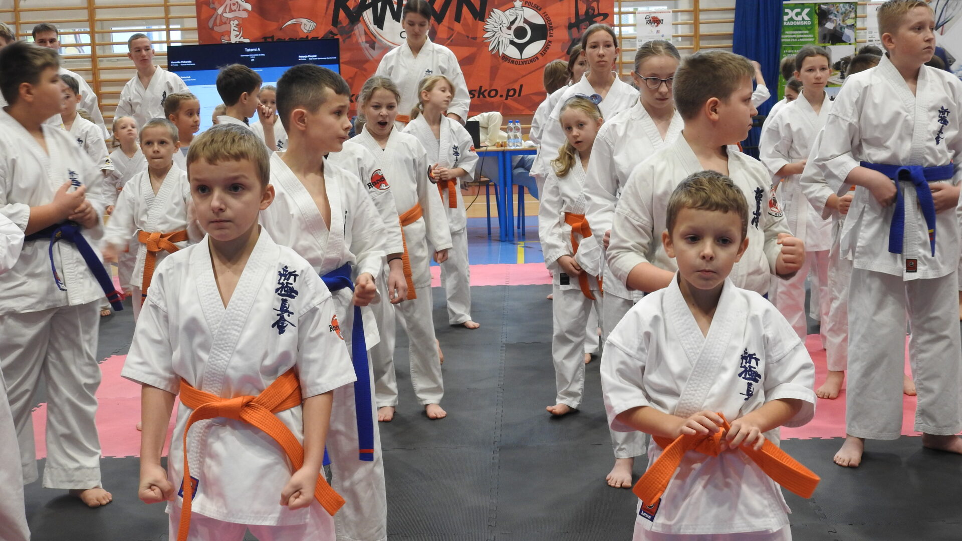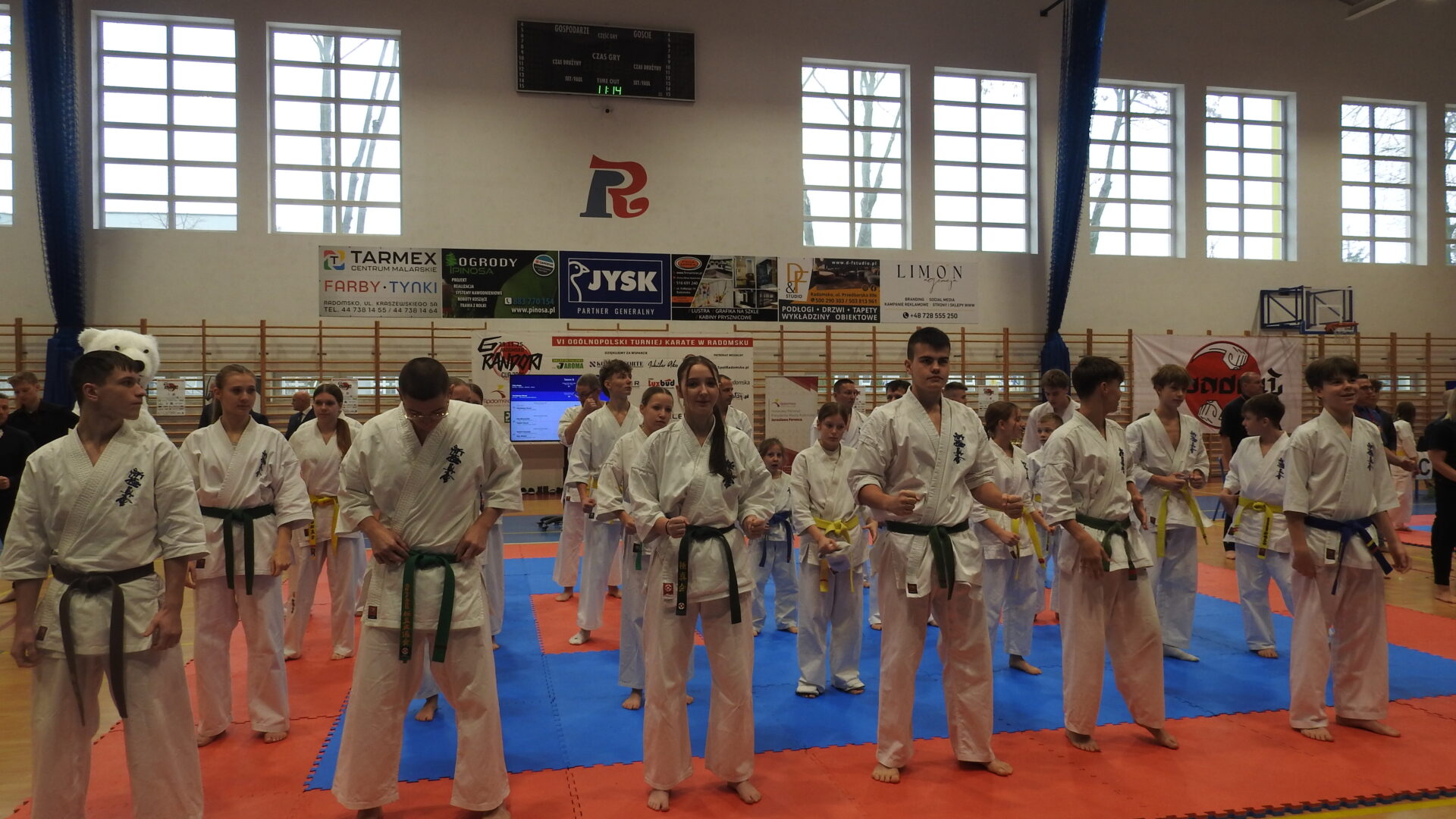 Uroczystej inauguracji towarzyszyły pokazy akrobatyczne, które wprowadziły widzów w sportowy klimat i dodały wydarzeniu energii. Po godzinie 11:00 zawodnicy wyszli na maty, rozpoczynając emocjonujące zmagania w swoich kategoriach wiekowych. Rywalizacja przebiega w duchu fair play, zgodnie z wartościami karate – dyscypliną, wytrwałością i wzajemnym szacunkiem.