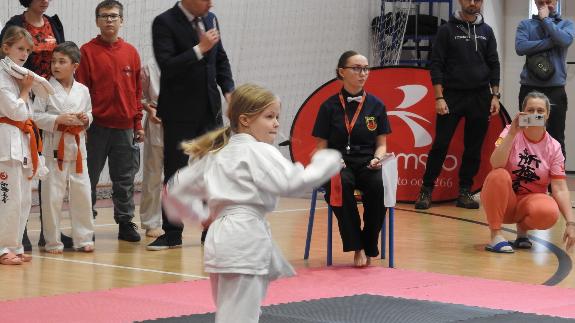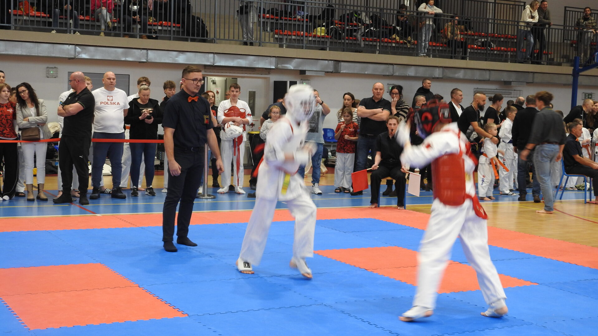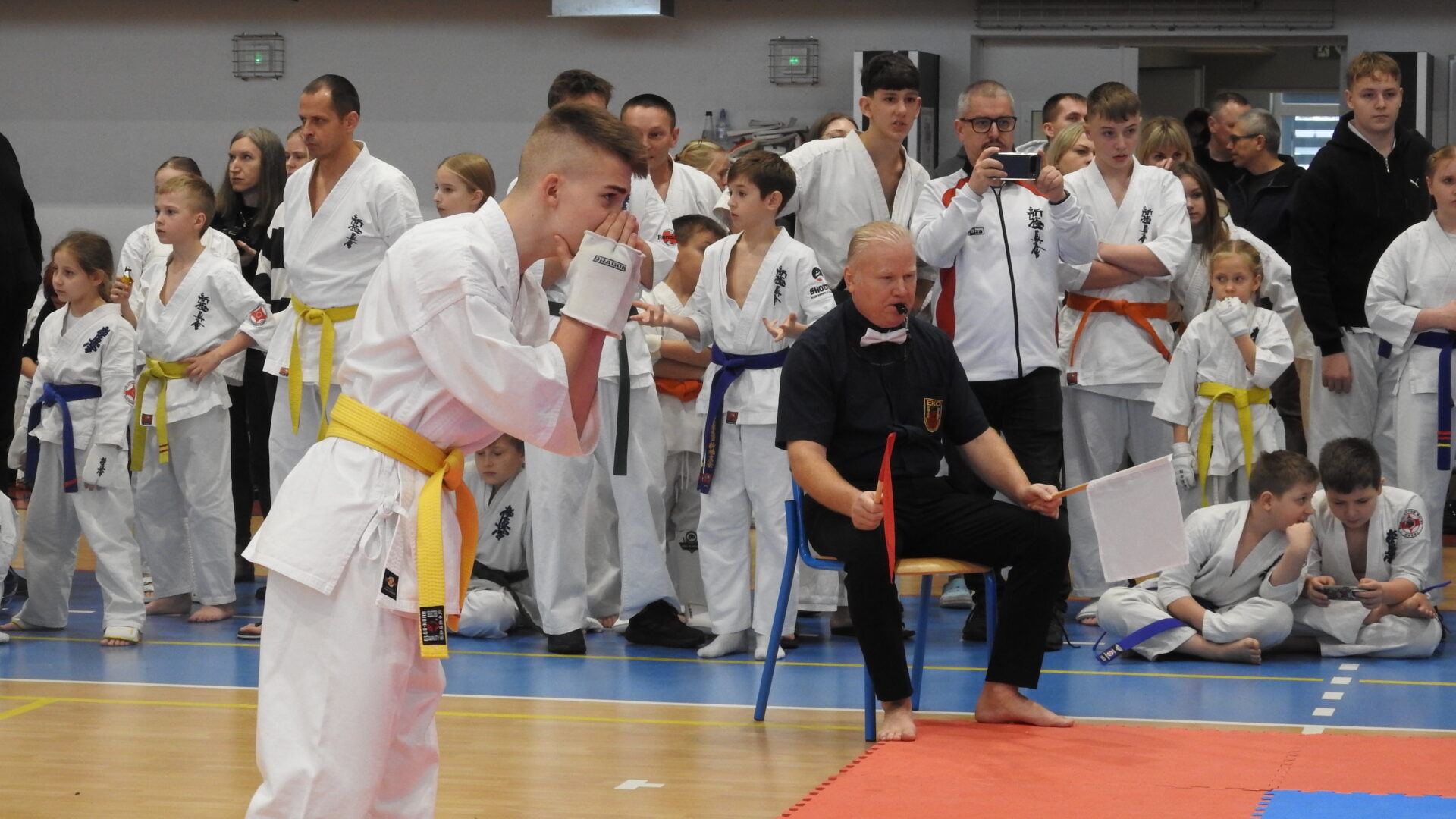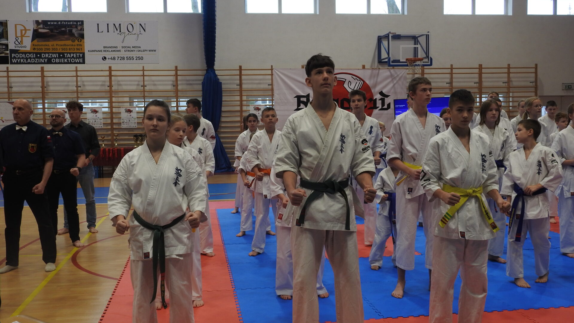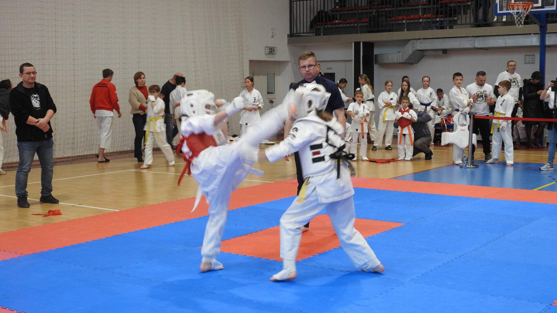 Uroczystej inauguracji towarzyszyły pokazy akrobatyczne, które wprowadziły widzów w sportowy klimat i dodały wydarzeniu energii. Po godzinie 11:00 zawodnicy wyszli na maty, rozpoczynając emocjonujące zmagania w swoich kategoriach wiekowych. Rywalizacja przebiega w duchu fair play, zgodnie z wartościami karate – dyscypliną, wytrwałością i wzajemnym szacunkiem.