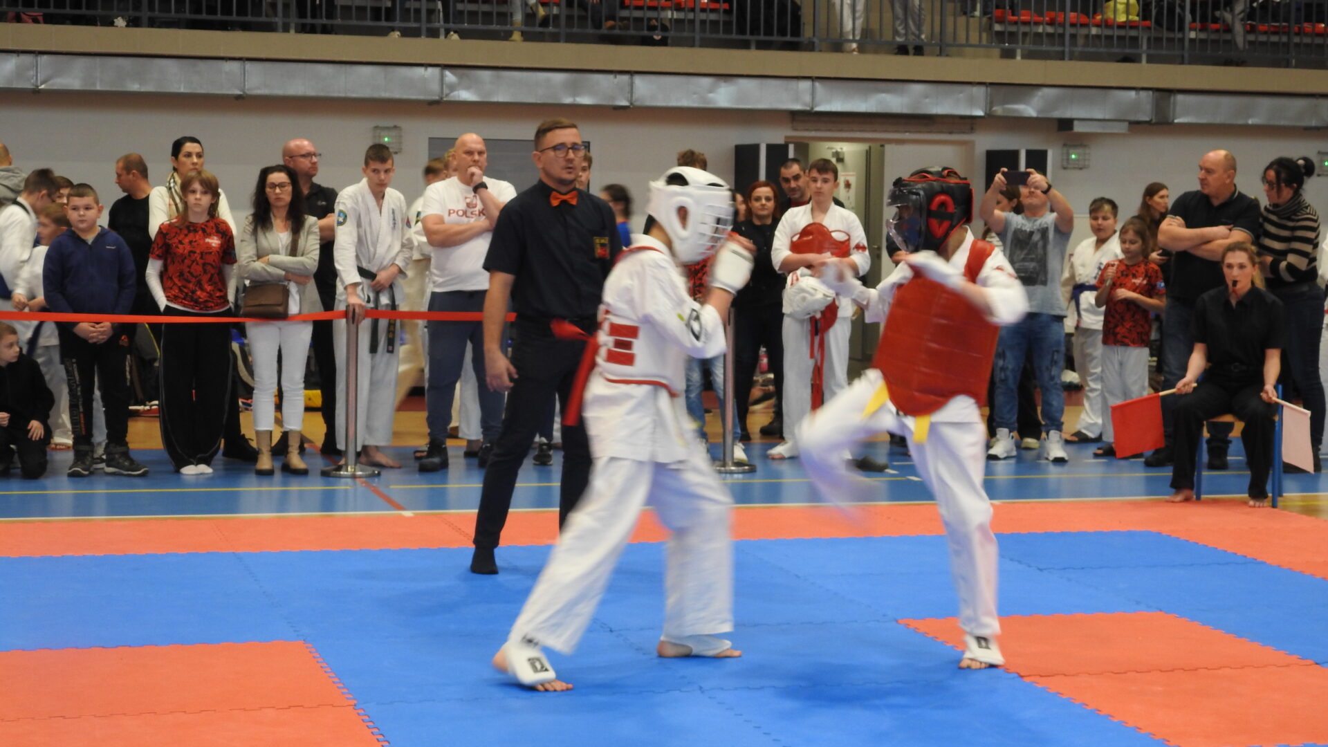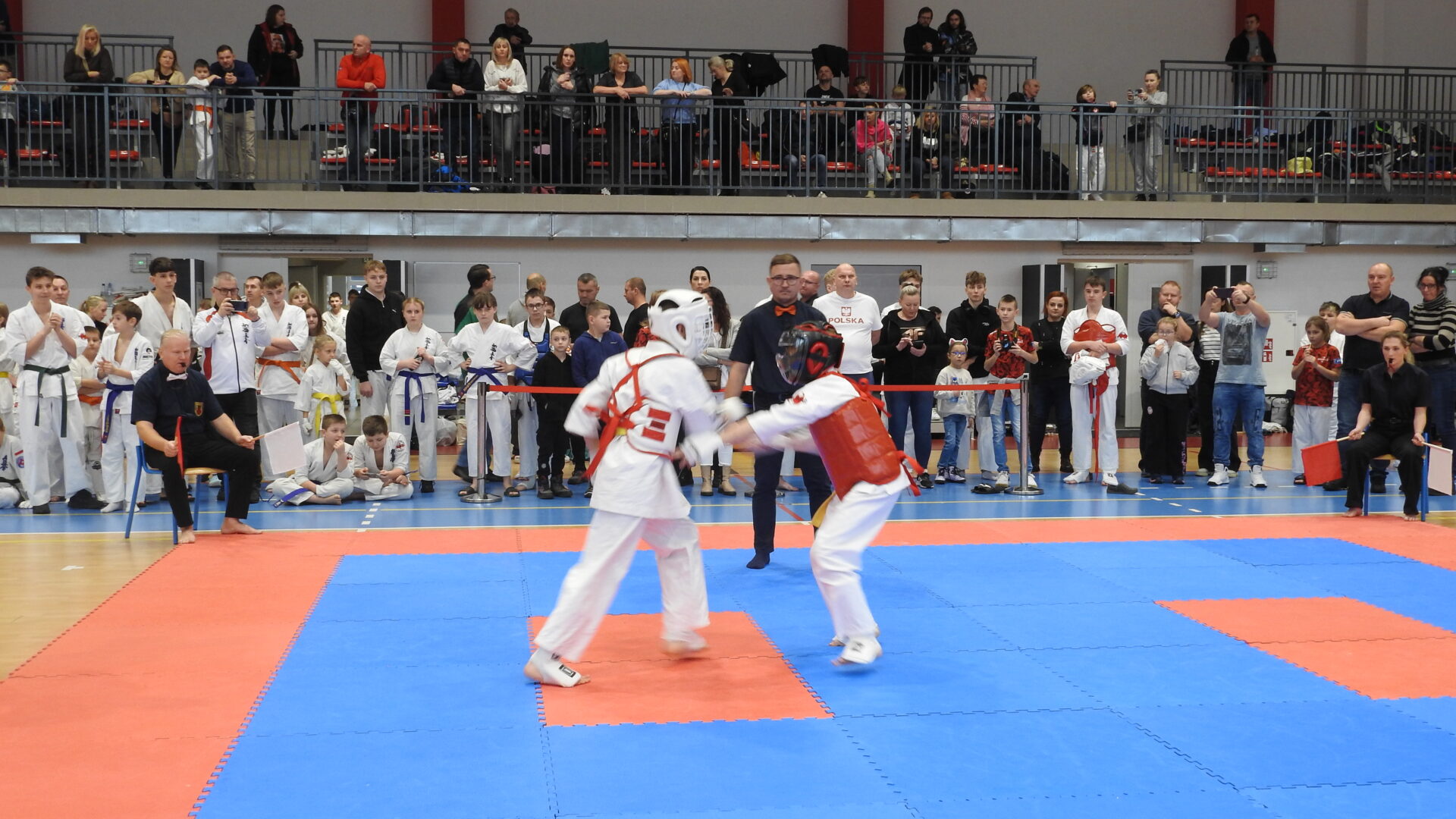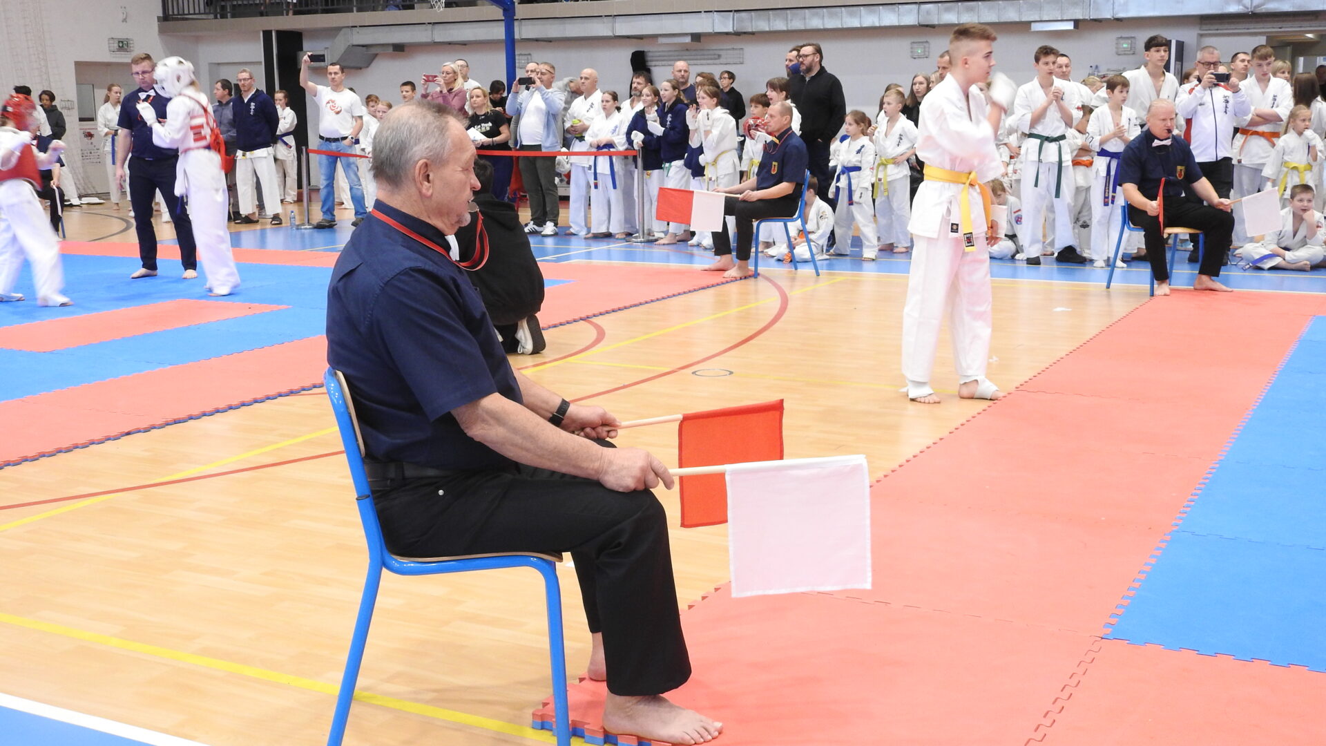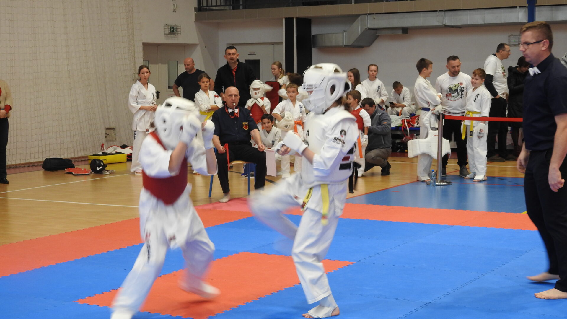 Uroczystej inauguracji towarzyszyły pokazy akrobatyczne, które wprowadziły widzów w sportowy klimat i dodały wydarzeniu energii. Po godzinie 11:00 zawodnicy wyszli na maty, rozpoczynając emocjonujące zmagania w swoich kategoriach wiekowych. Rywalizacja przebiega w duchu fair play, zgodnie z wartościami karate – dyscypliną, wytrwałością i wzajemnym szacunkiem.