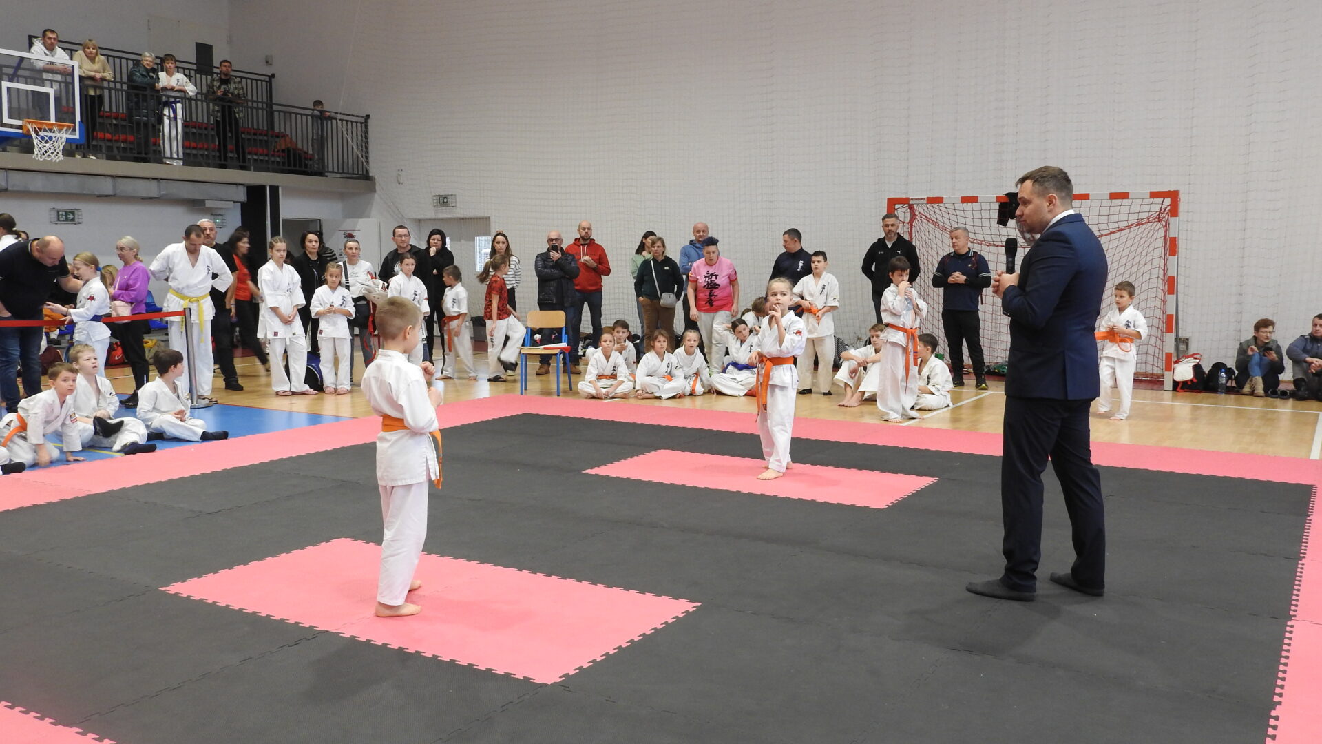 W hali sportowej trwa właśnie jedno z najbardziej wyczekiwanych wydarzeń sezonu – Randori CUP, turniej karate, który co roku przyciąga młodych zawodników z całego regionu. Tegoroczna edycja oficjalnie została zainaugurowała o godzinie 10:30 uroczystym otwarciem, podczas którego organizatorzy przywitali uczestników, trenerów oraz licznie zgromadzoną publiczność.