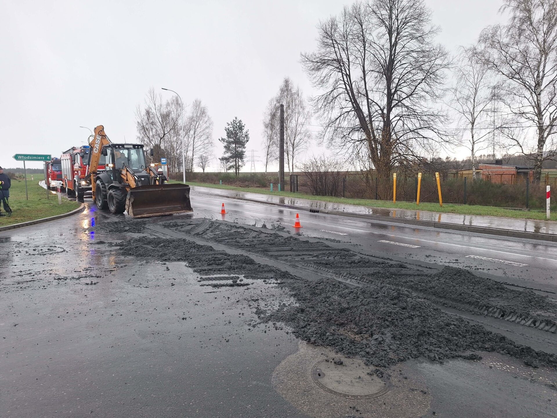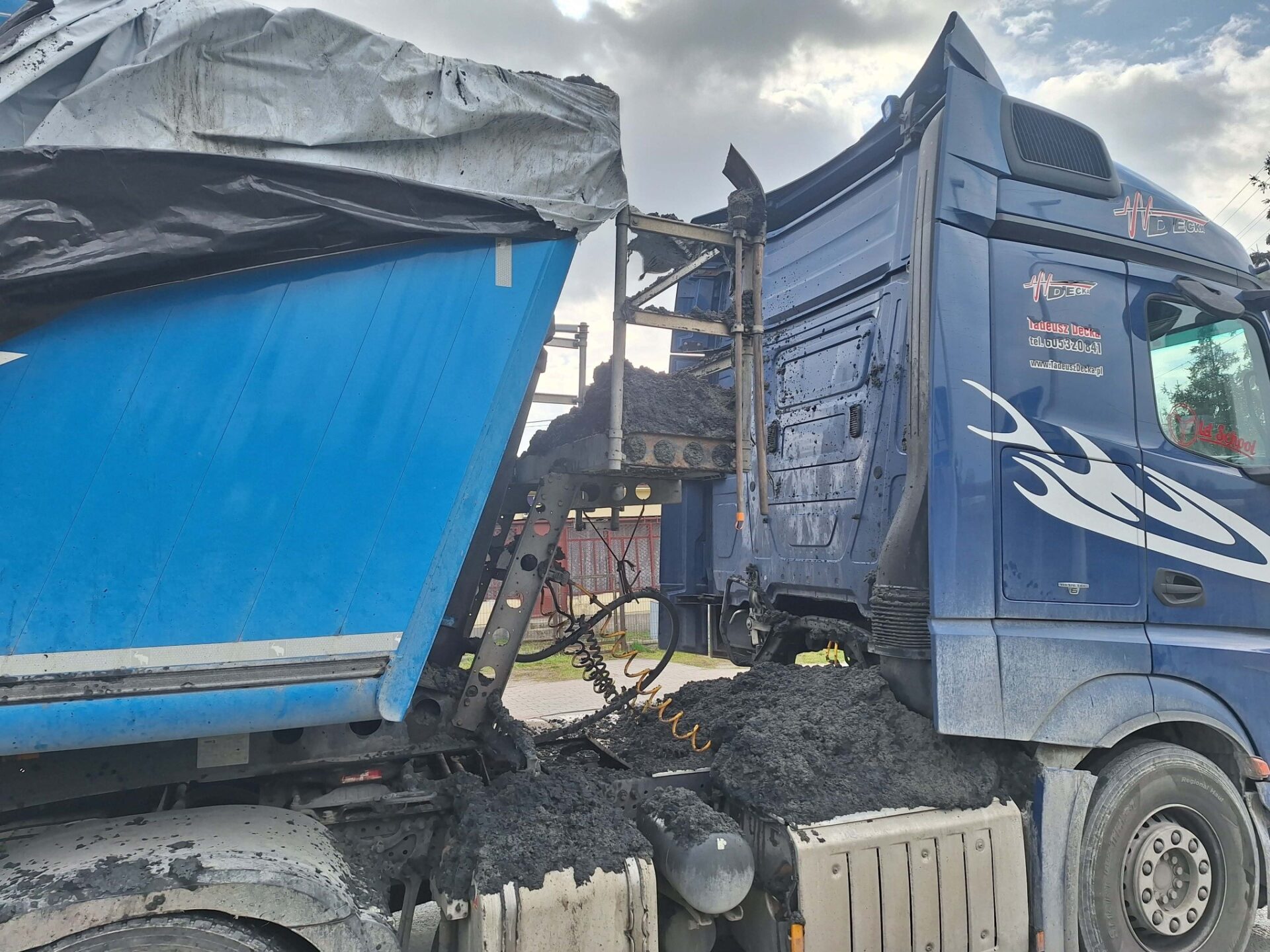 Nagłe zatrzymanie doprowadziło do uszkodzenia plandeki naczepy oraz części przewożonego ładunku. Część towaru rozlała się na jezdnię, co spowodowało utrudnienia w ruchu i konieczność uprzątnięcia drogi.