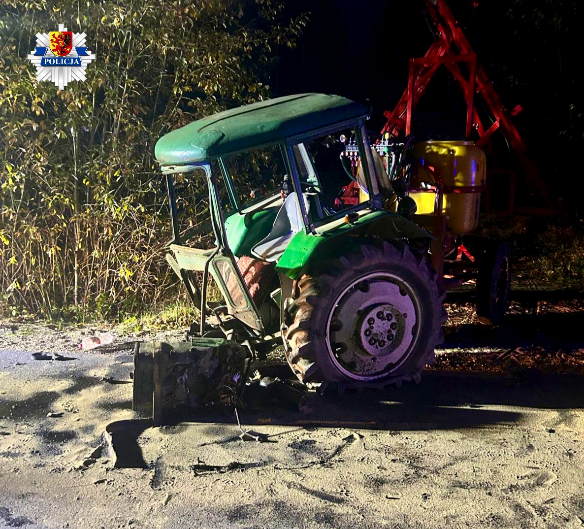 W wyniku zderzenia oba pojazdy zostały uszkodzone, jednak nikt nie odniósł obrażeń. Policjanci szybko ustalili, że kierowca ciągnika był nietrzeźwy – badanie wykazało 2,5 promila alkoholu w jego organizmie. Dodatkowo mężczyzna nie posiadał uprawnień do kierowania pojazdami, a ciągnik, którym się poruszał, nie miał ważnych badań technicznych.