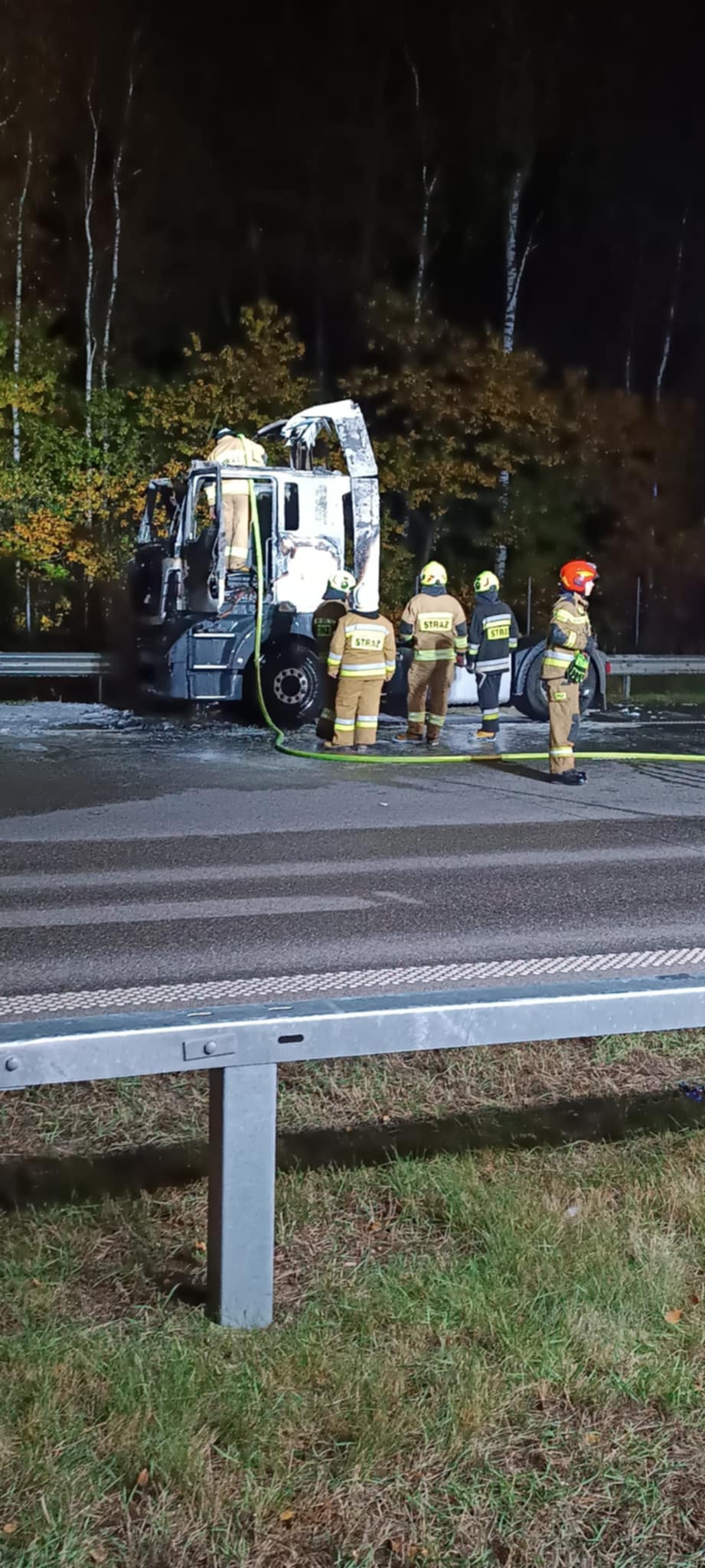 Przyczyny pożaru ciągnika siodłowego są obecnie ustalane przez funkcjonariuszy Policji.