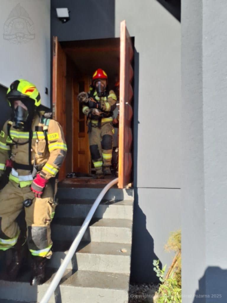 Na szczęście mieszkańcy opuścili dom jeszcze przed przyjazdem straży pożarnej. Z płonącego budynku strażacy ewakuowali również psa – zwierzę całe i zdrowe trafiło z powrotem do właścicieli.