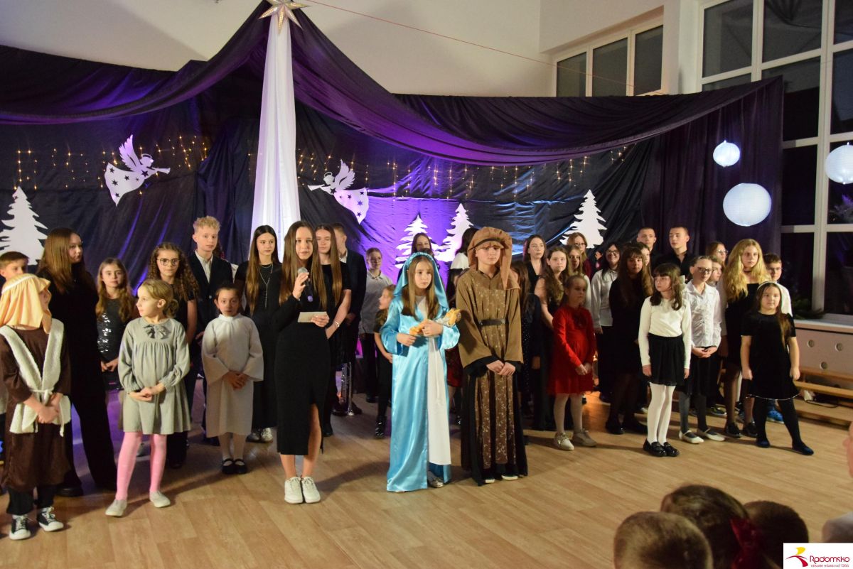 Podczas spotkania kolędy i pastorałki przeplatały się ze wzruszającymi wierszami w wykonaniu uczniów. Młodzi artyści z wielkim zaangażowaniem i wrażliwością prezentowali przygotowany program, wypełniając salę gimnastyczną magicznym, świątecznym nastrojem. Ich występy poruszyły serca zgromadzonych i pozwoliły na chwilę refleksji nad istotą świąt – pokojem, życzliwością i wzajemnym zrozumieniem.