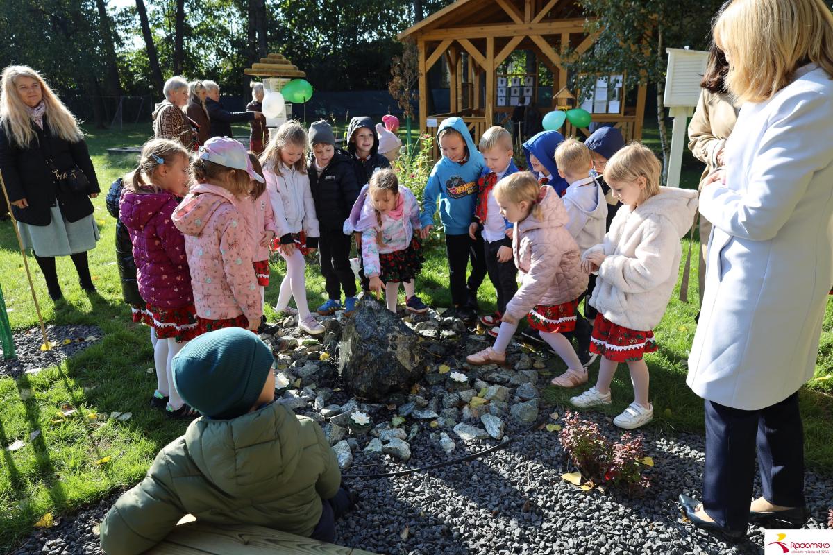 Symbolicznego przecięcia wstęgi dokonały m.in. zastępca prezydenta Radomska Małgorzata Kańska-Kipigroch, naczelnik Wydziału Edukacji i Kultury Małgorzata Krupska, dyrektor placówki Jadwiga Grzegorczyk, a także dzieci i inicjatorki projektu. Po części oficjalnej goście mogli zwiedzić nowe miejsce i przekonać się, jakie atrakcje przygotowano w przedszkolnym ogrodzie.