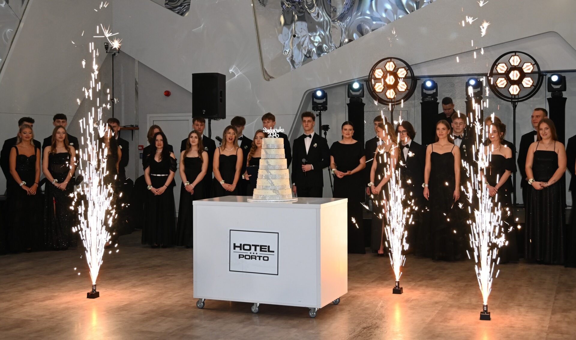 Uroczystość odbyła się w eleganckich wnętrzach hotelu Porto. Tradycyjnie wieczór rozpoczął się dostojnym polonezem, który został nagrodzony gromkimi brawami. Następnie przyszedł czas na wspólne świętowanie, rozmowy i taneczną zabawę do białego rana. Nie zabrakło również symbolicznego studniówkowego tortu.