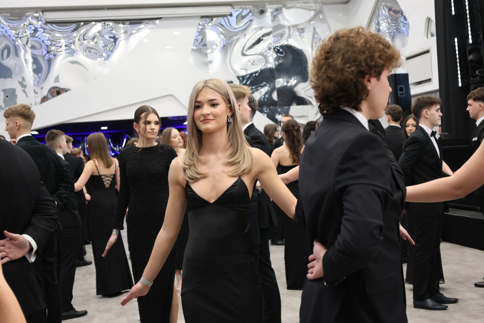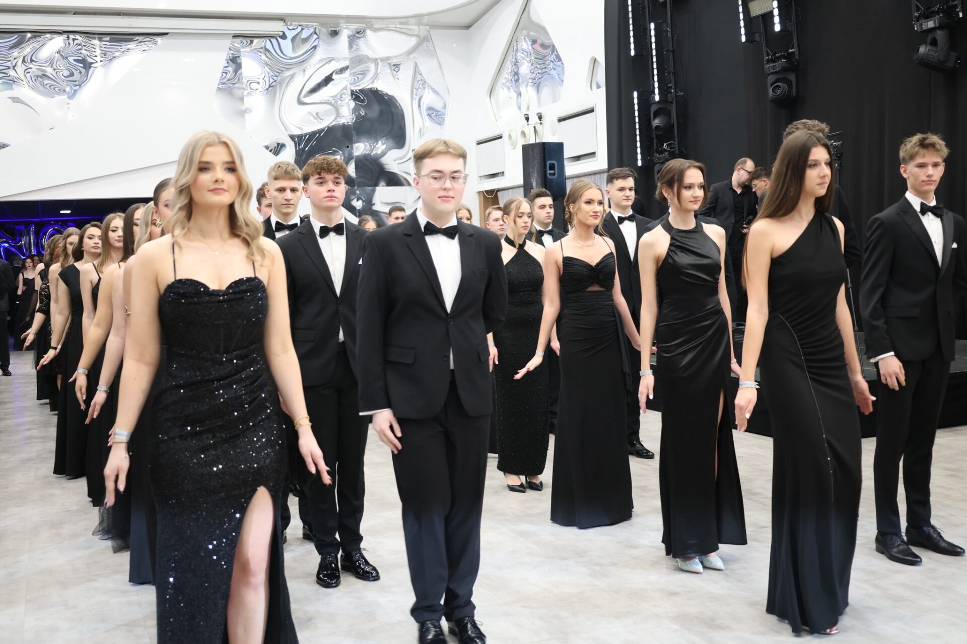 Zgodnie z wieloletnią tradycją bal rozpoczął się dostojnym polonezem, przygotowanym z dużą starannością i nagrodzonym gromkimi brawami. Nie zabrakło również wzruszających podziękowań skierowanych do rodziców i nauczycieli za lata wsparcia, wychowania i przekazywanej wiedzy. Ważnym momentem wieczoru były także życzenia powodzenia na nadchodzących egzaminach maturalnych.
