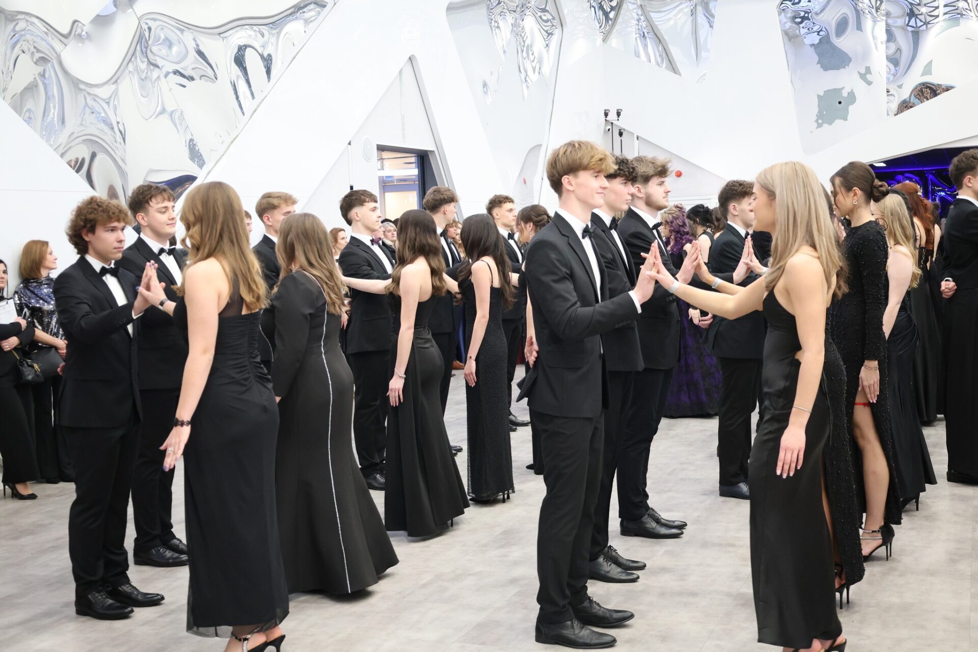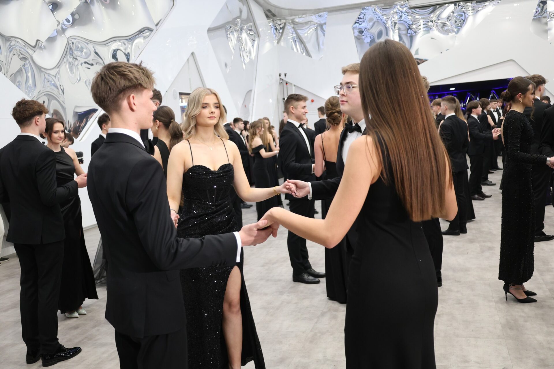 Po części oficjalnej przyszedł czas na wspólną zabawę i świętowanie. Parkiet szybko zapełnił się tańczącą młodzieżą, a radosna atmosfera towarzyszyła uczestnikom do późnych godzin nocnych.