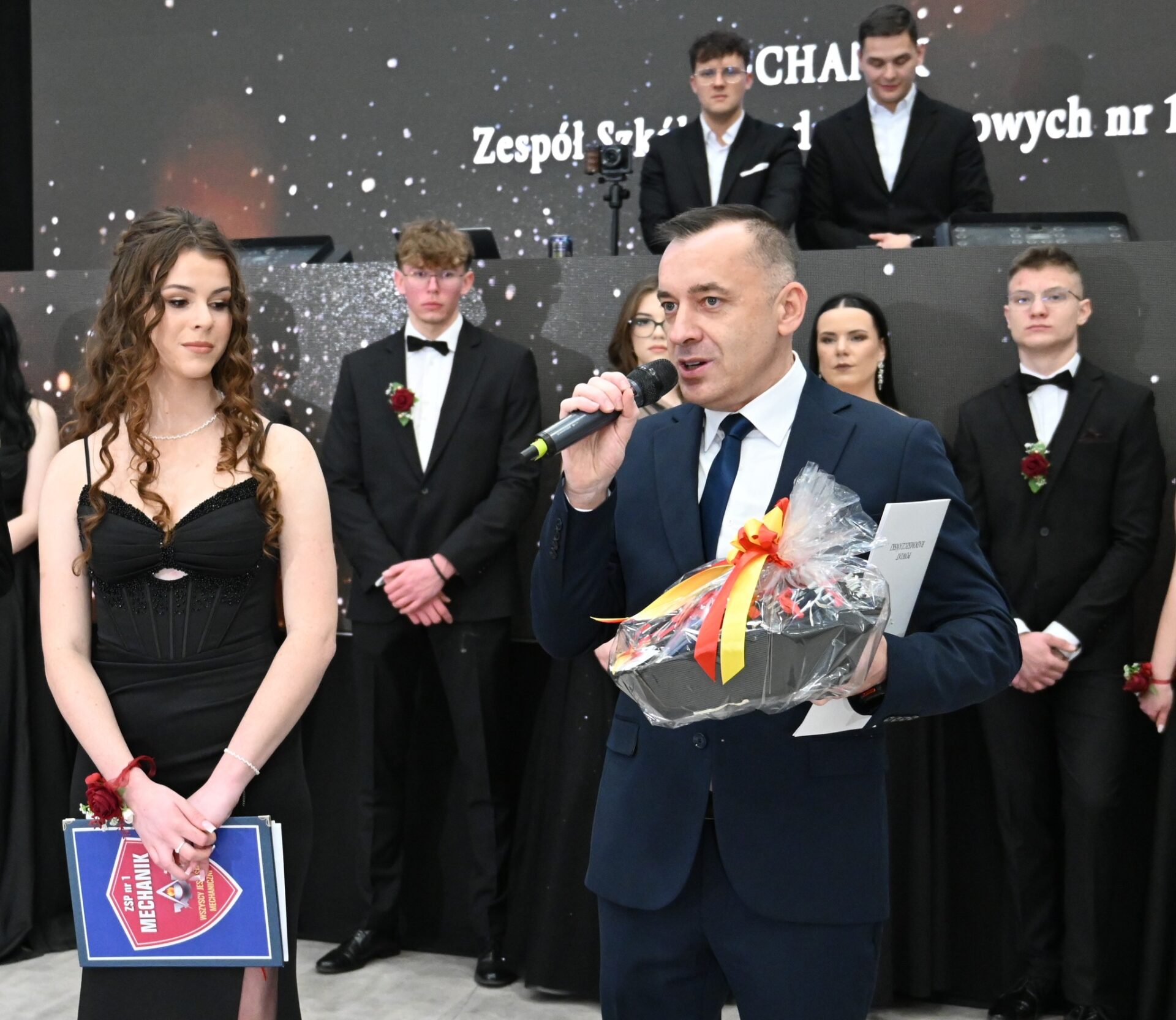 Ciepłe słowa do uczniów skierowała również dyrektor szkoły Ewa Grodzicka. W imieniu całego grona pedagogicznego życzyła maturzystom powodzenia na maturze, pomyślnego wejścia w dorosłość oraz wspaniałej, ale jednocześnie odpowiedzialnej zabawy podczas tego wyjątkowego wieczoru.